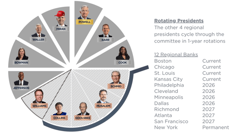 We can predict a general dove/hawk sentiment based on their comments and the rotation. In 2025, the overall sentiment was fairly neutral but is expected to lean slightly more hawkish in 2026.