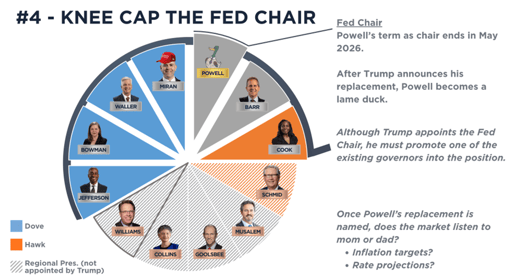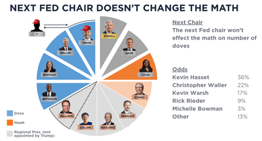 What’s interesting to note is that the next Fed Chair doesn’t necessarily change the voting math. That person is either Waller/Bowman OR Miran’s replacement in January. All three of those are already supportive of lower rates.