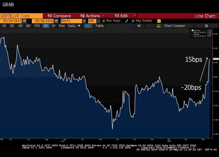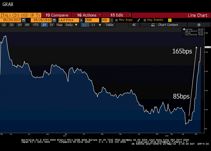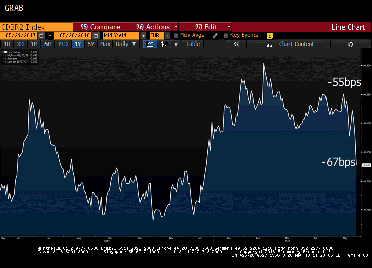 I also hadn’t envisioned the Bund dropping 0.20% in a week on the back of an Italian election crisis.