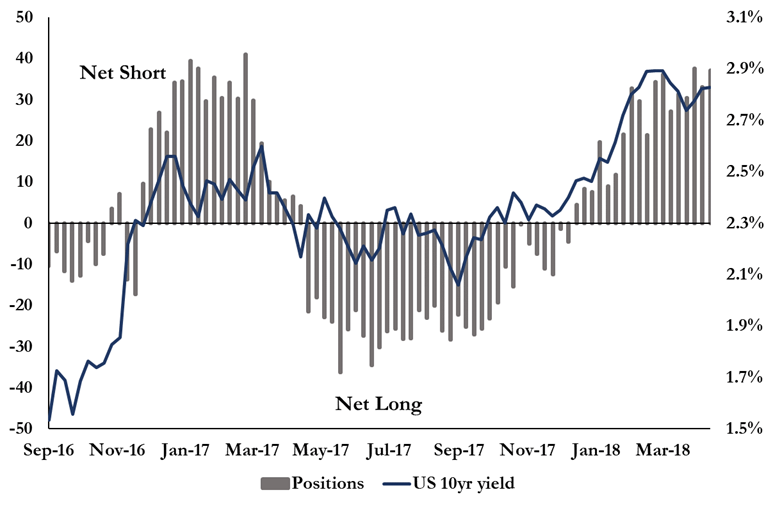 The market is basically as short as it was post-election, but the starting point for the T10 is much higher. There is a slight lag with reporting of the contracts, so the most recent showed the T10 at 2.95%, but clearly 3.00% is on the horizon.